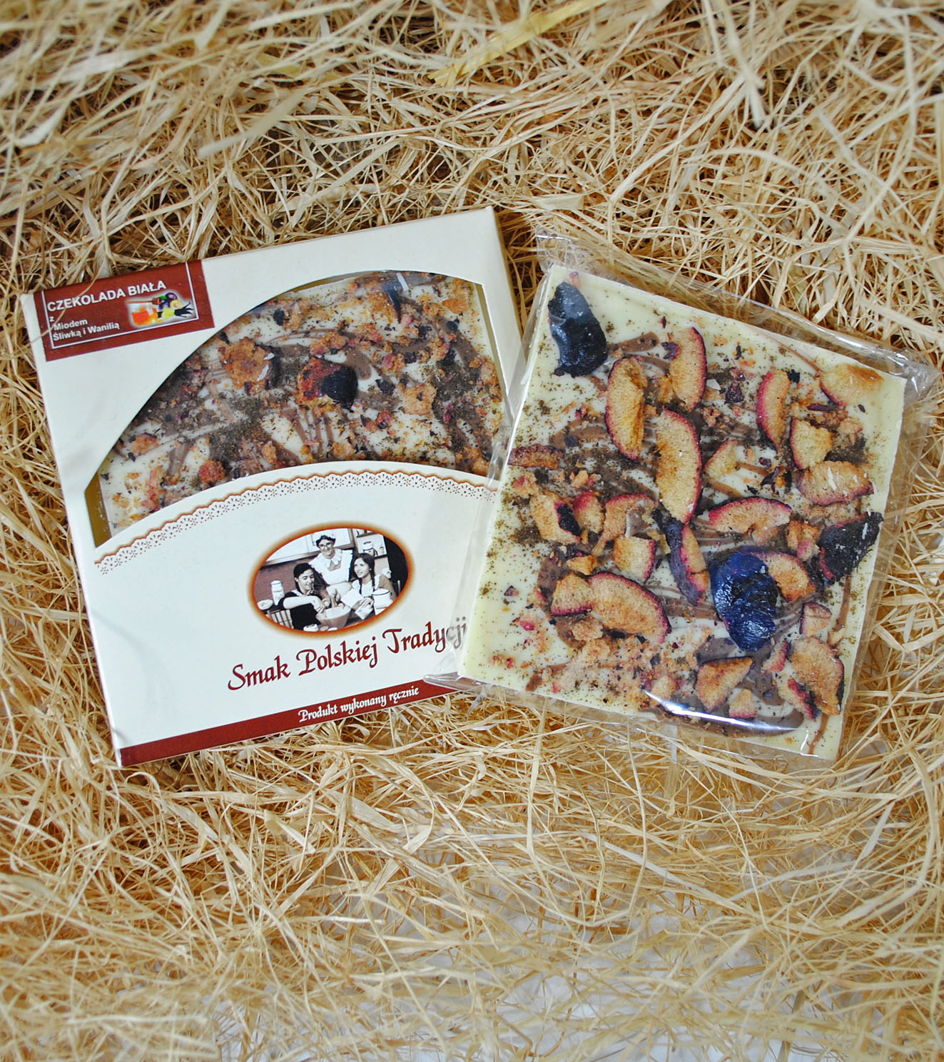 Aromatyczne połączenie miodu z polską śliwką, zatopioną w wyjątkowo mleczno-kremowej białej czekoladzie. Całość została wzbogacona wanilią Bourbon z Madagaskaru.