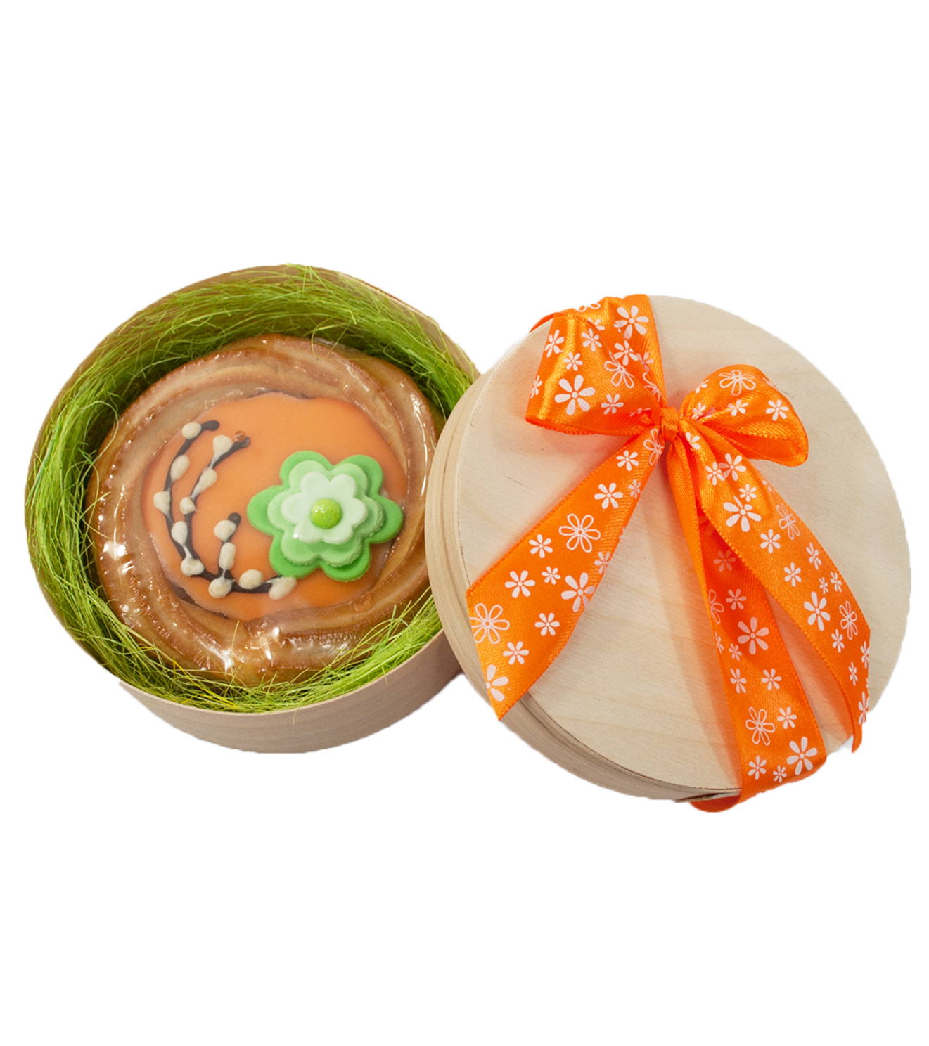 Upominek w naturalnej, okrągłej łubie z tradycyjnym mazurkiem.