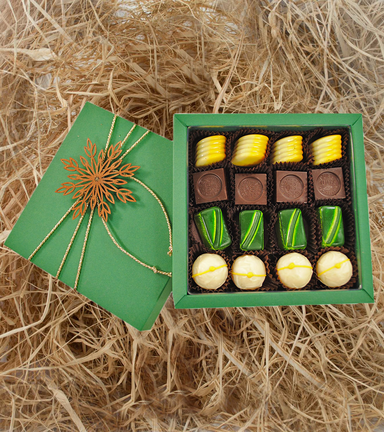 Delikatne, ręcznie wyrabiane pralinki w różnych kształtach i smakach 16 szt.
